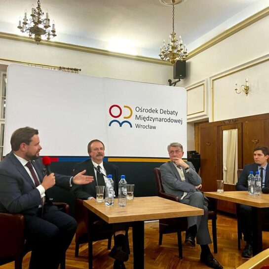 W sali konferencyjnej Dworu Polskiego we Wrocławiu odbyło się spotkanie z członkami wrocławskiego korpusu konsularnego. Organizatorem był Ośrodek Debaty Międzynarodowej. W rozmowach uczestniczyli: Piotr Piss oraz Wicekonsul Węgier - Adam Szesztay, Konsul Honorowy Austrii - dr Edward Wąsiewicz i Konsul Honorowy Gruzji - Wojciech Wróbel.